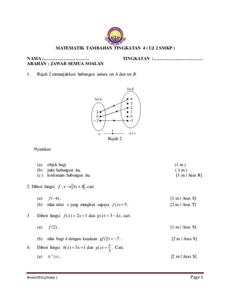 Contoh Soalan Add Math Function. Contoh soalan add math functions, contoh soalan add math form 4,. Untuk koleksi nota matematik tambahan tingkatan 4, 5 yang lebih lengkap :.